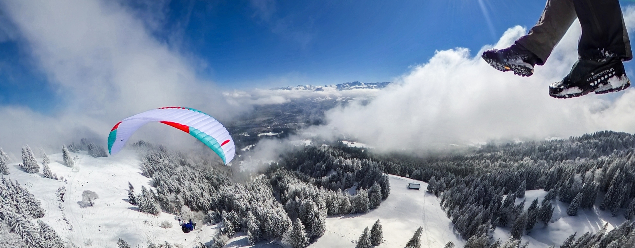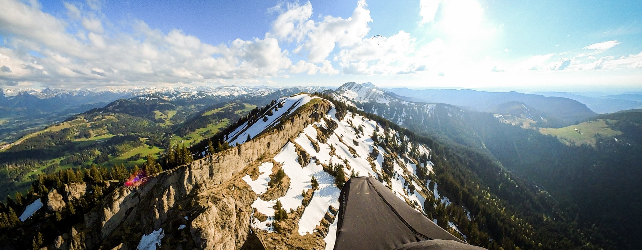 Damals wurde nur am Grünten von einigen wenigen Gleitschirmfliegern geflogen, obwohl die Steilheit des Geländes der Gleitleistung der geflogenen BigX's, Rademachern und Combi Cut's sehr entgegenkam.